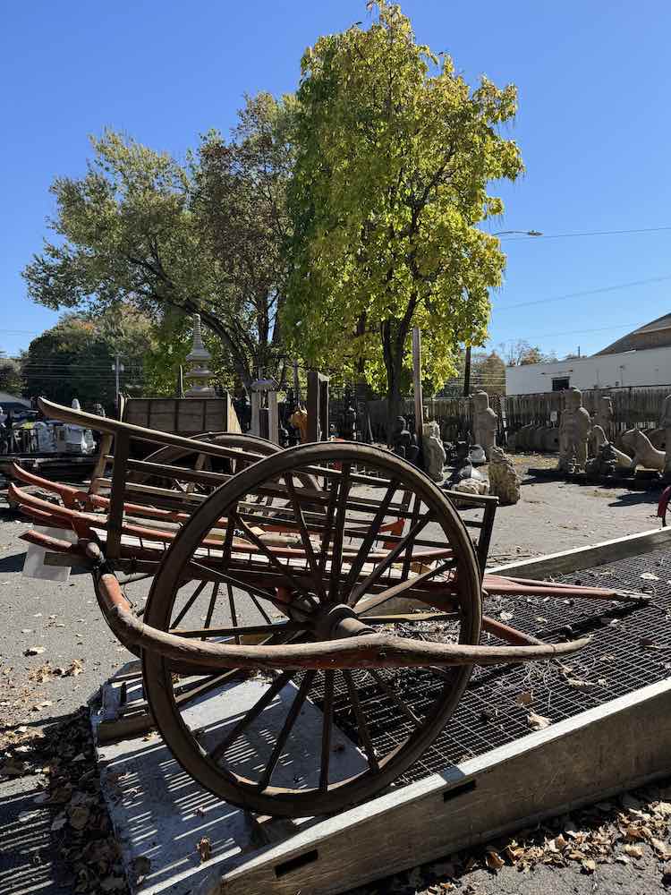 Antique teak wood farm cart. Steady and strong, hand build and has served faithfully for decades. There are iron outside each wheels to strengthen. A very well build and beautiful piece. Kindly check photographs for further details. One of a kind piece.