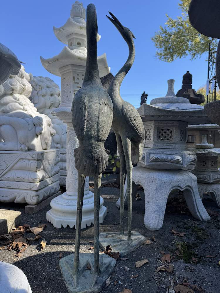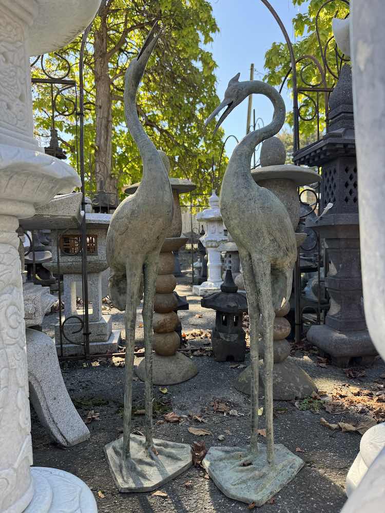 This is a lost wax cast brass piece from Java, Indonesia. Beautiful and graceful look of the cranes. A wonderful pair inside or featured in a garden – it can last through the winters. Over time, if left outside it will continue to verdigris (change color due to exposure to the elements).